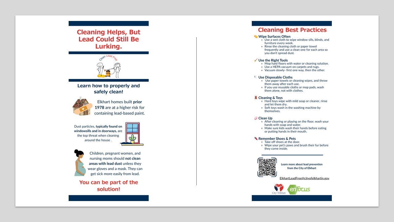 Lead dust can accumulate on surfaces inside a home, which can expose children to unsafe levels of lead. Lead-safe Cleaning are strategies to decrease or eliminate lead dust when a hazard has been identified, in a manner safe to humans and animals. Lead is a heavy metal that is toxic to humans and is most commonly ingested by children in the form of dust or paint chips. When a lead hazard is identified, it is important to clean in a way that will limit the spread of lead dust in the air and on surfaces.
