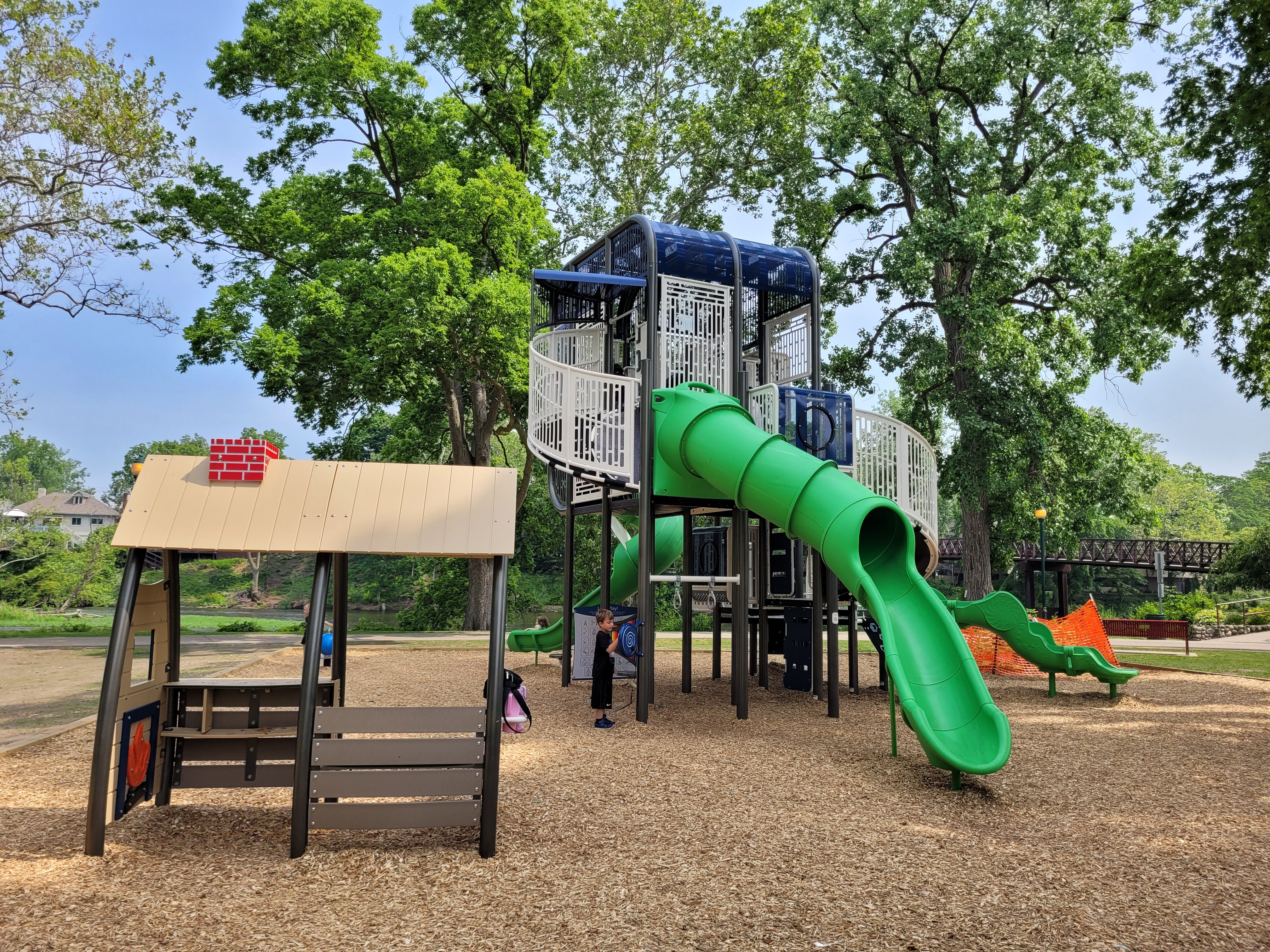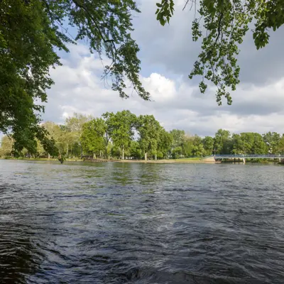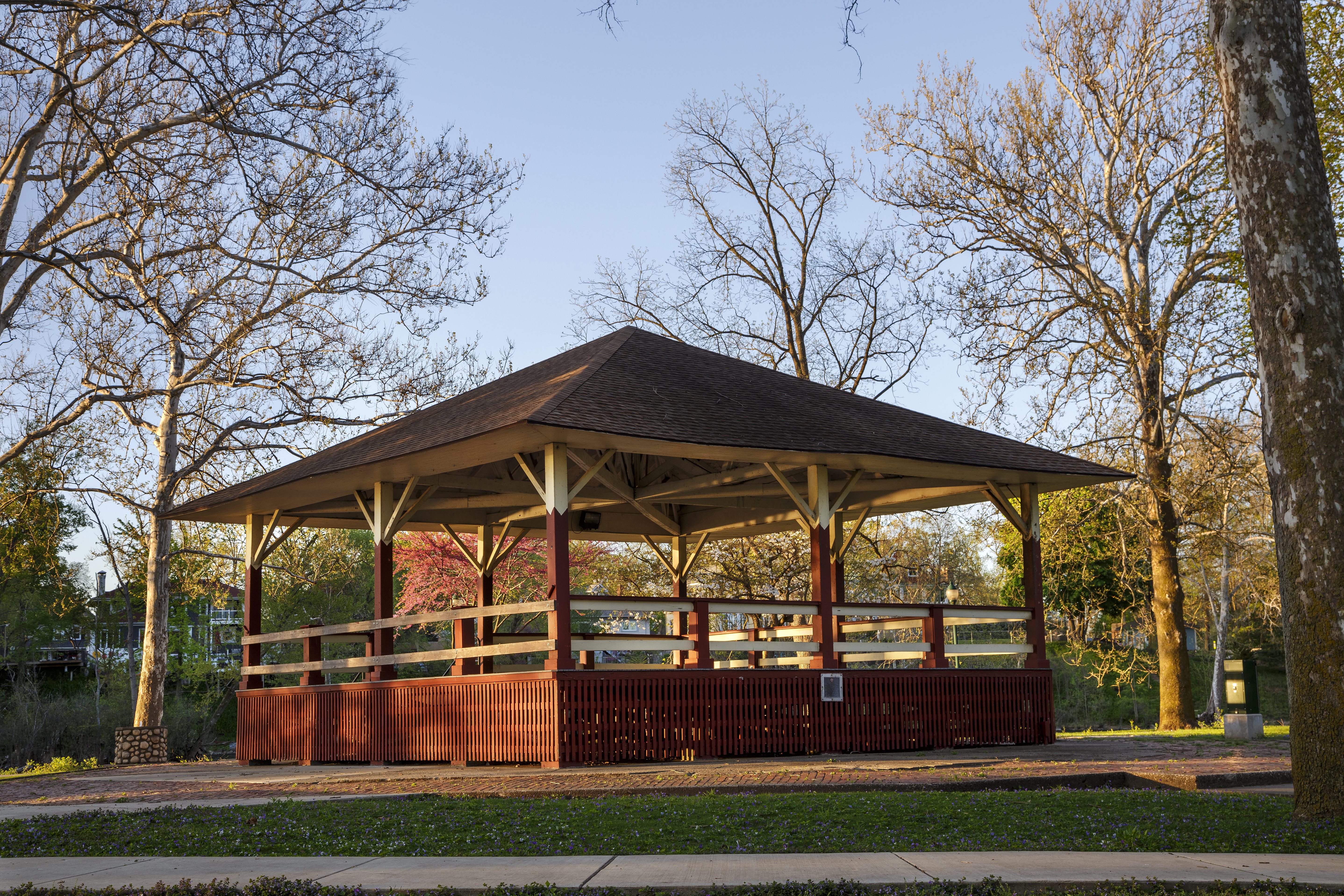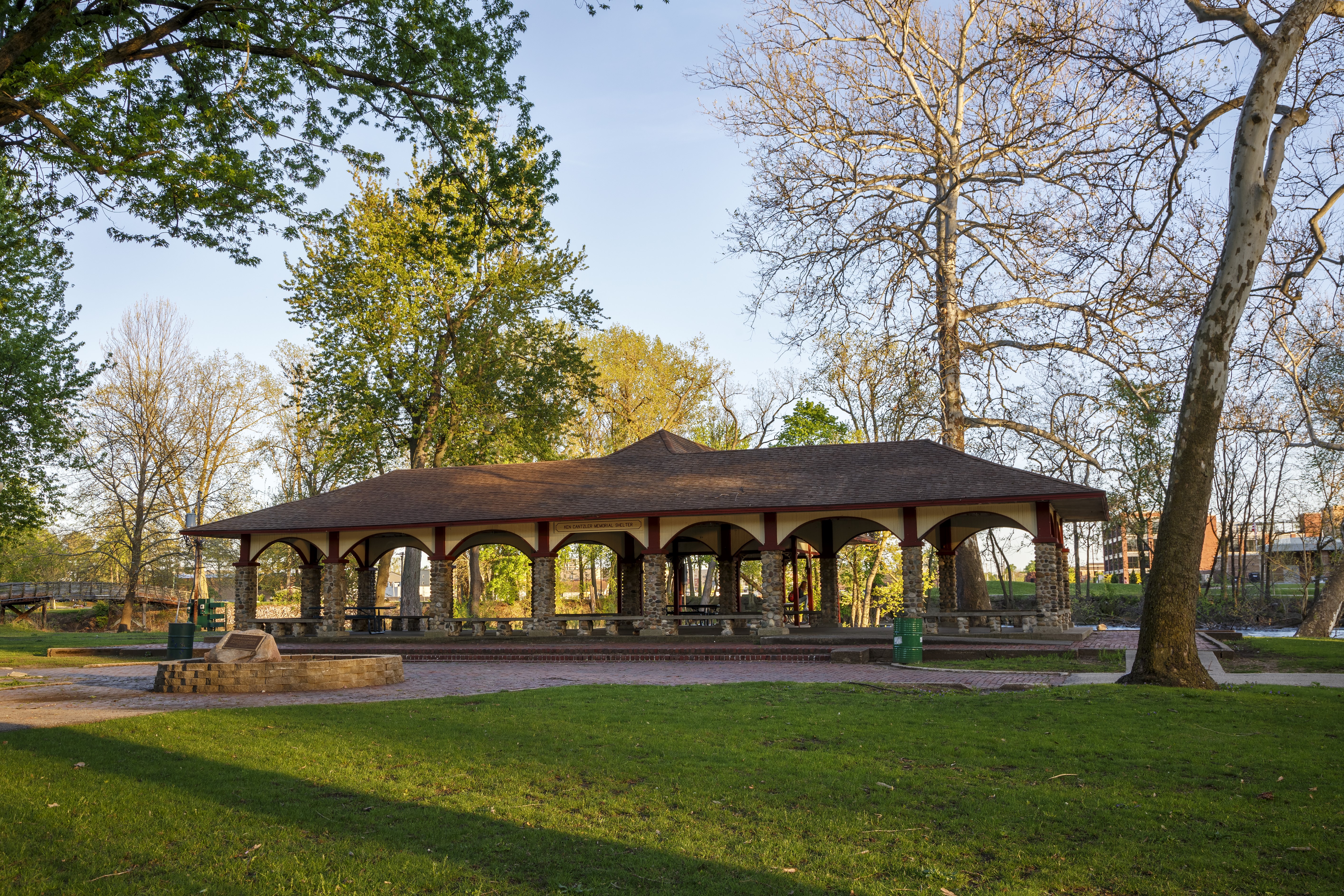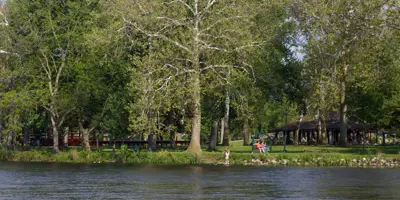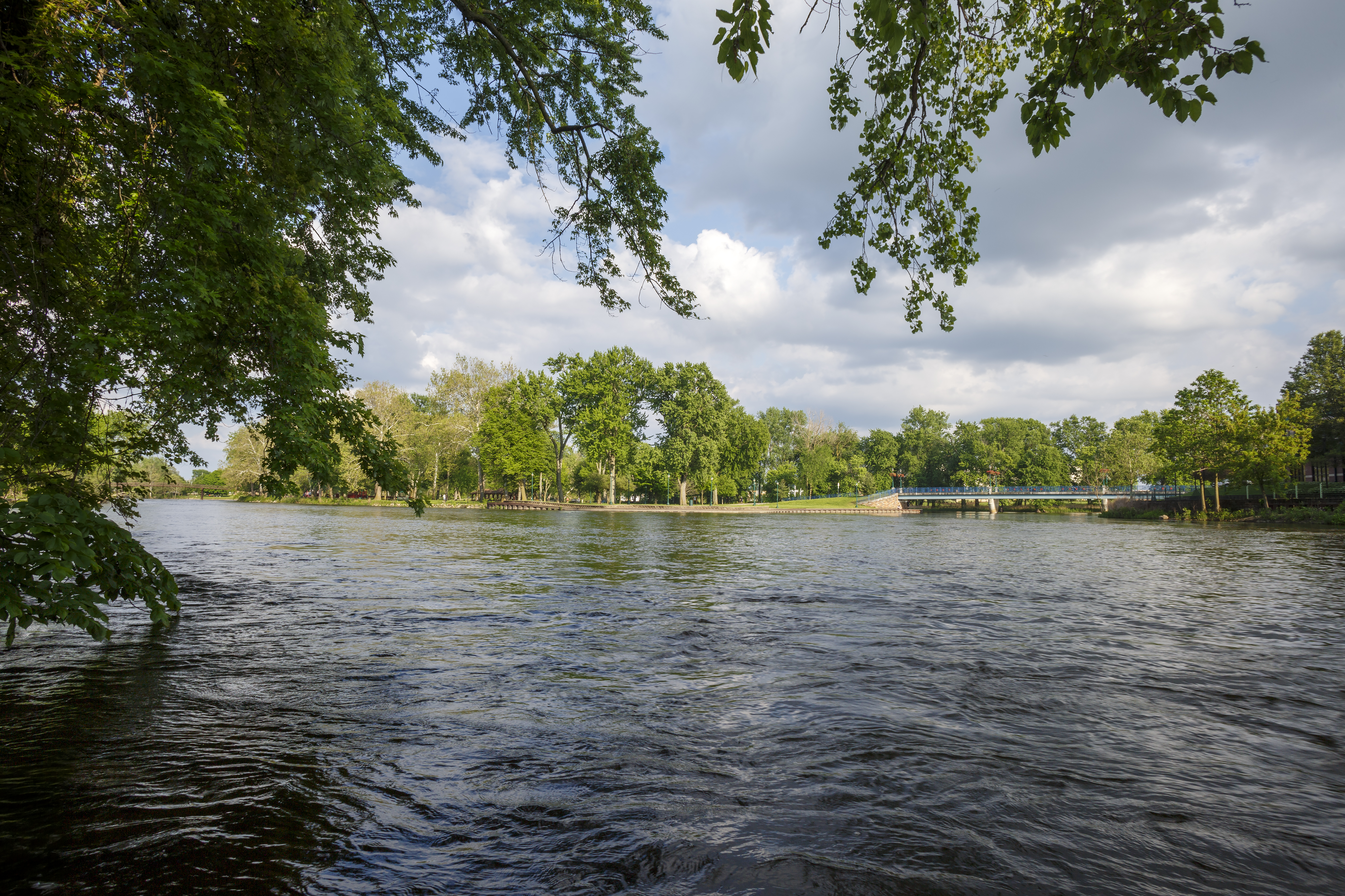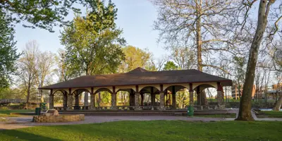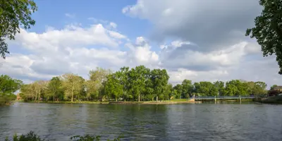 Island Park, nestled downtown at the meeting point of the Elkhart and St. Joseph Rivers, is a scenic community hub. The park features a charming bandstand, a playground, and walking paths, making it perfect for leisurely strolls, family outings, or riverside relaxation. Easily accessible on foot from nearby bridges, Island Park also hosts popular events such as the annual Rhapsody Arts & Music Festival and offers amenities for fishing and community gatherings.